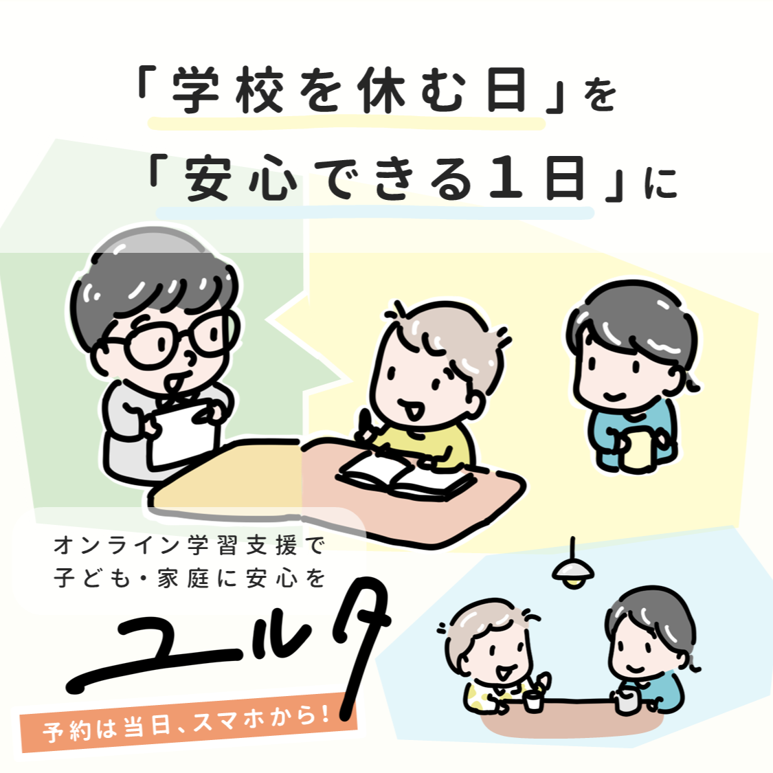 「学校に行きたくない日」に、当日予約ですぐに利用できるオンライン個別指導サービスです。「ゆるく・楽しく・オルタナティブな学び」を提供します。